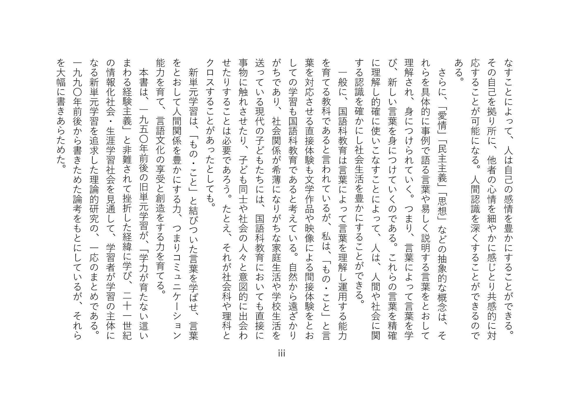 「本書『国語科新単元学習』は、多くの実践に学びつつ思索してきた論考に手を加えて再編成し体系化したものである」本書「あとがき」より