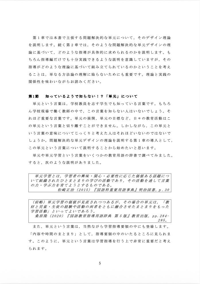 問題解決的な国語科単元デザインの理論と実践(小学5年生)-言語活動を軸としたことばの探究を実現するために-